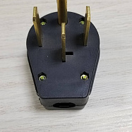 Вилка NEMA 14-50P — это силовой разъем американского стандарта, предназначенный для подключения мощного электрооборудования (сварочных аппаратов, генераторов, промышленного инструмента) к сетям 125/250 В переменного тока. Конструкция предусматривает четыре провода (фаза 1, фаза 2, нейтраль, заземление) и рассчитана на ток до 50 А. Изготовлена из термостойкой резины и усиленных токопроводящих материалов, обеспечивающих безопасность при высоких нагрузках.